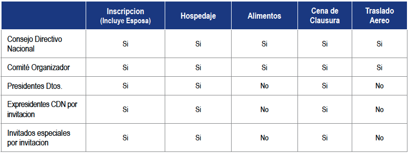 Los Distritos determinarán los criterios para la asignación de las cortesías, solo con el compromiso de hacerlo del conocimiento al CDN en razón de que prevalezca la transparencia debida. El único requisito por parte del CDN es que tanto el convencionista como su acompañante deberán tener vigente la cuota correspondiente al 2025.